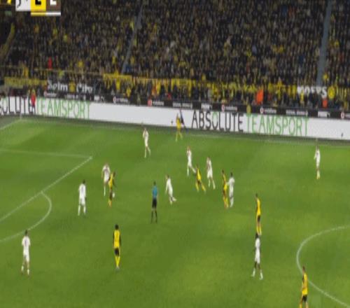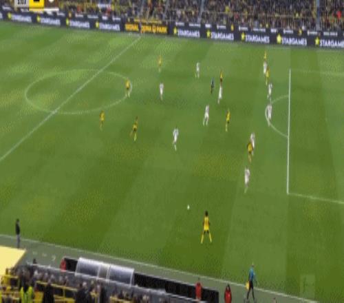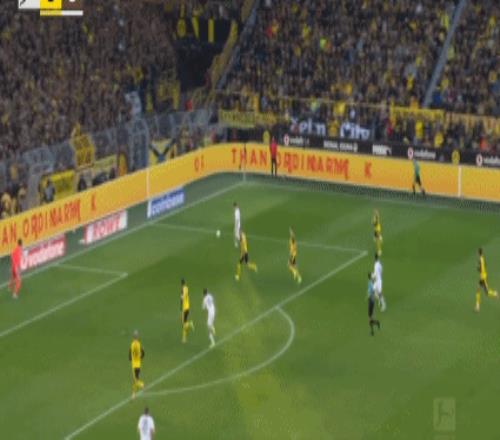 第45+1分钟,阿德耶米突破传中,布兰特破门,多特1-0圣保利