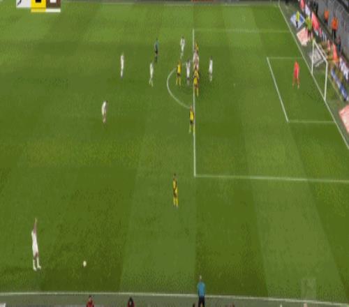 第90+5分钟,拜尔最后时刻造点,埃姆雷-詹主罚命中,多特3-2圣保利